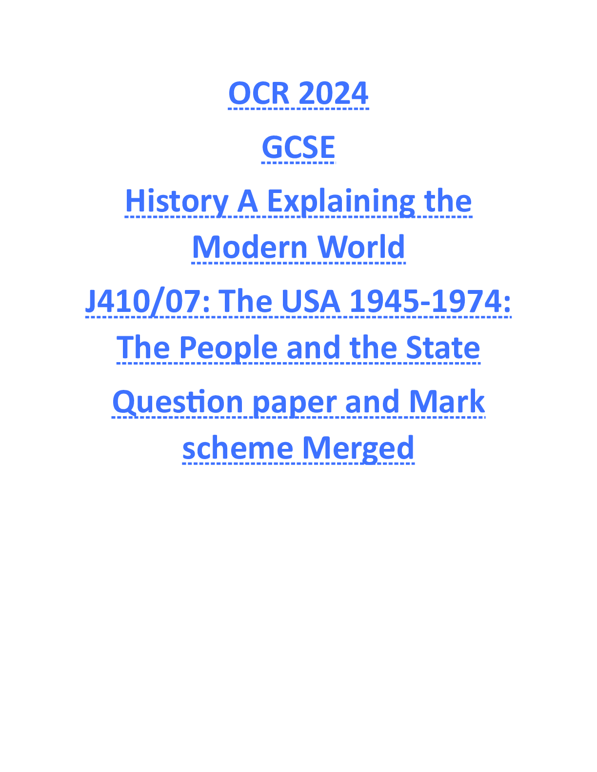 OCR > GCSE QUESTION PAPER > OCR 2024 GCSE History A Explaining the Modern World J410/07: The USA 1945-1974: The People and the State Question paper and Mark scheme Merged (All)