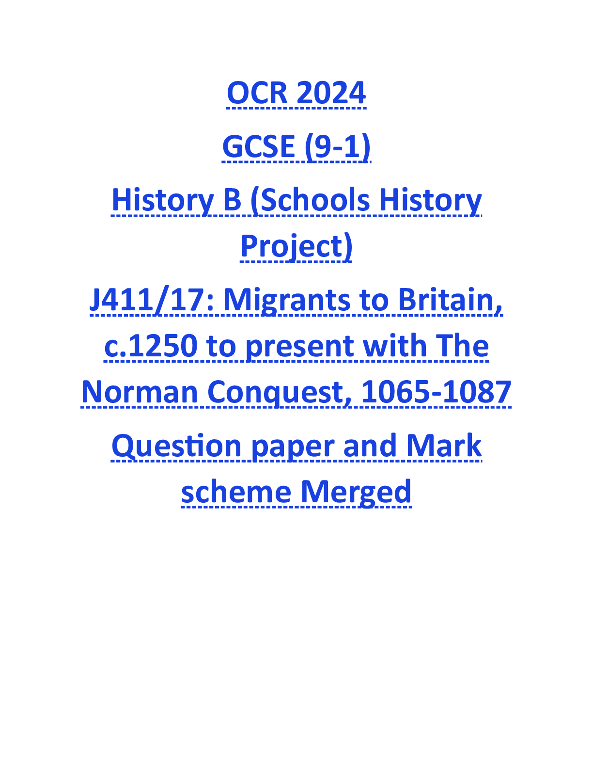 OCR > GCSE QUESTION PAPER > OCR 2024 GCSE (9-1) History B (Schools History Project) J411/17: Migrants to Britain, c.1250 to present with The Norman Conquest, 1065-1087 Question paper and Mark scheme Merged (All)