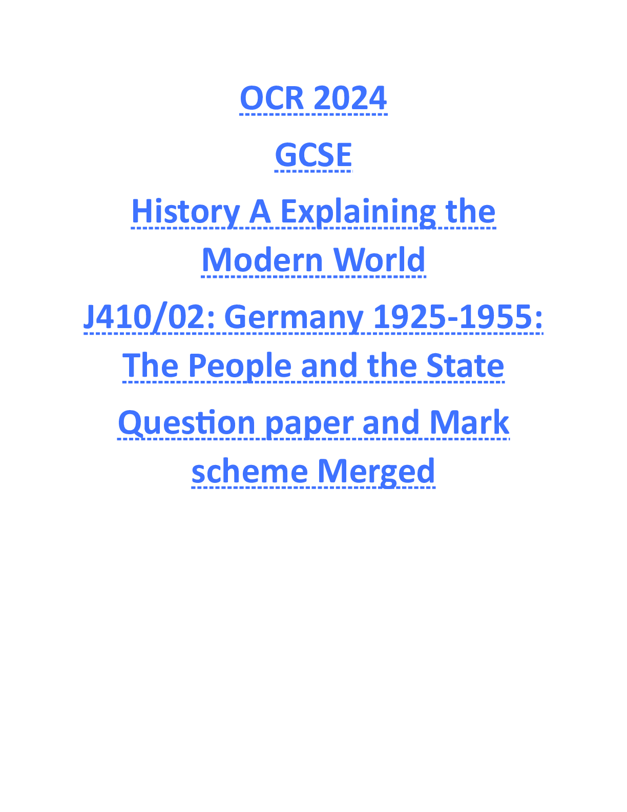 OCR > GCSE QUESTION PAPER > OCR 2024 GCSE History A Explaining the Modern World J410/02: Germany 1925-1955: The People and the State Question paper and Mark scheme Merged (All)
