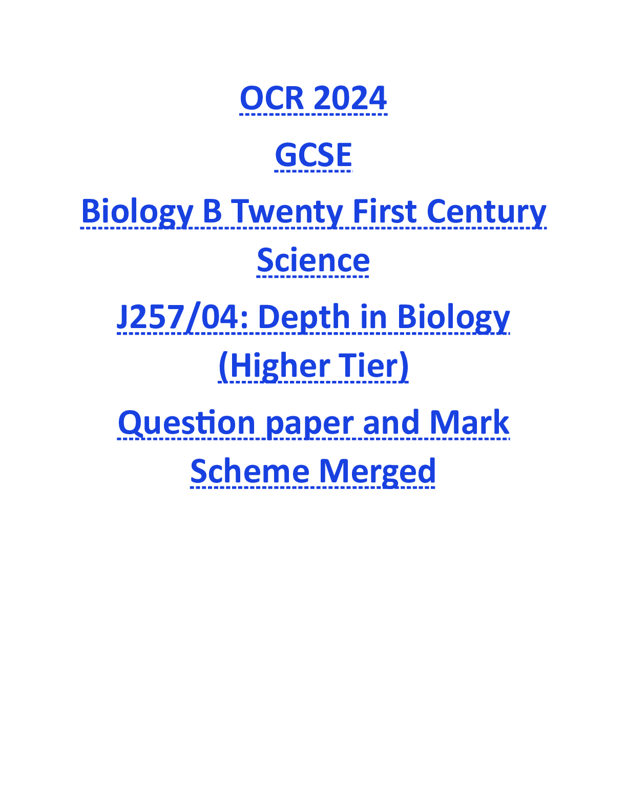 OCR > GCSE QUESTION PAPER > OCR 2024 GCSE Biology B Twenty First Century Science J257/04: Depth in Biology (Higher Tier) Question paper and Mark Scheme Merged (All)