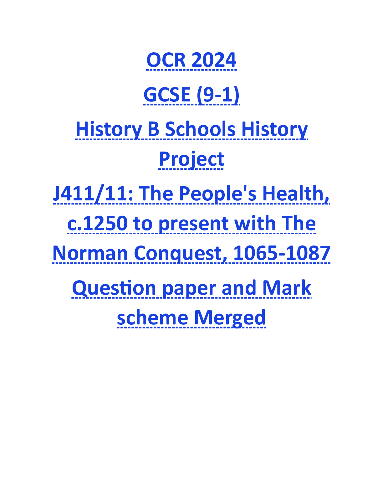 OCR > GCSE QUESTION PAPER > OCR 2024 GCSE (9-1) History B Schools History Project J411/11: The People's Health, c.1250 to present with The Norman Conquest, 1065-1087 Question paper and Mark scheme Merged (All)