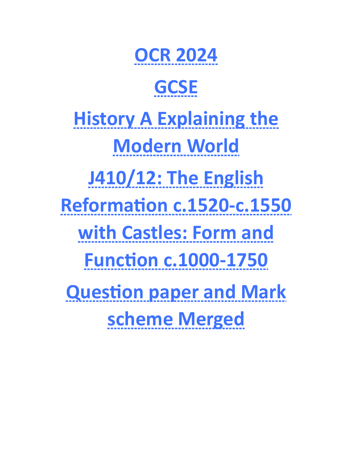 OCR > GCSE QUESTION PAPER > OCR 2024 GCSE History A Explaining the Modern World J410/12: The English Reformation c.1520-c.1550 with Castles: Form and Function c.1000-1750 Question paper and Mark scheme Merged (All)