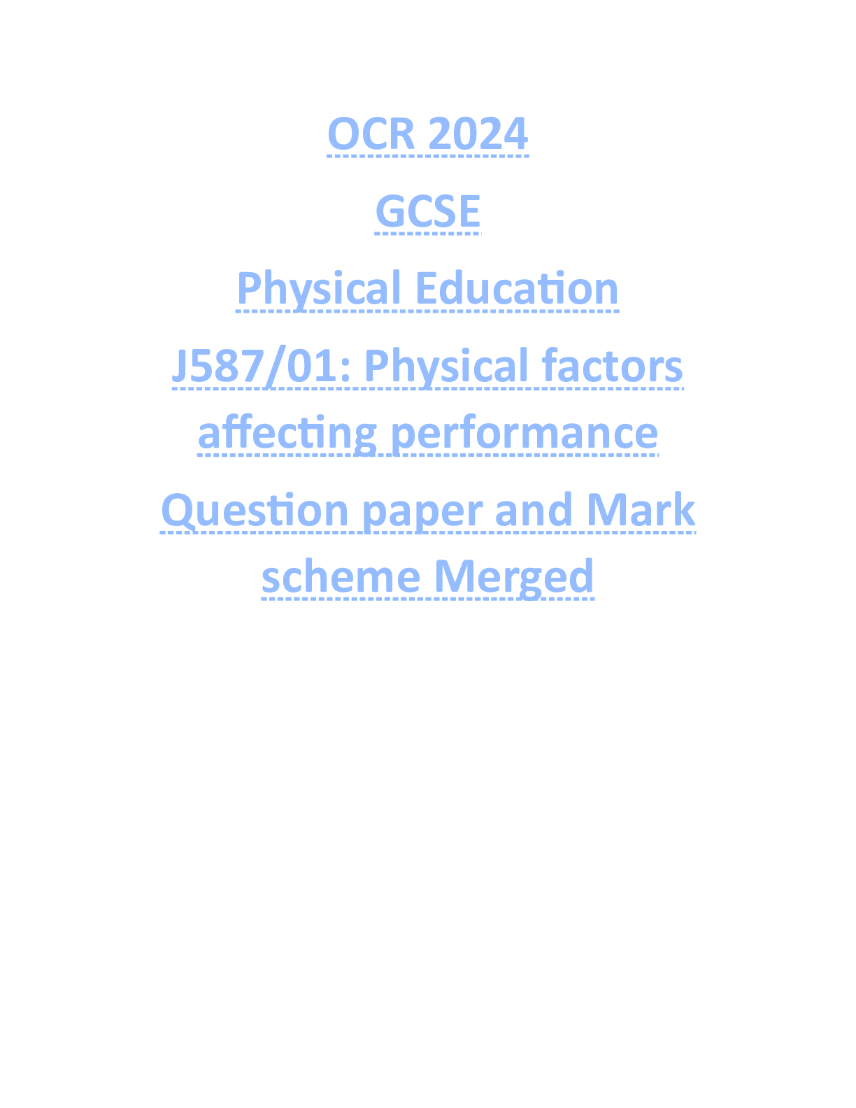 OCR > GCSE QUESTION PAPER > OCR 2024 GCSE Physical Education J587/01: Physical factors affecting performance Question paper and Mark scheme Merged (All)