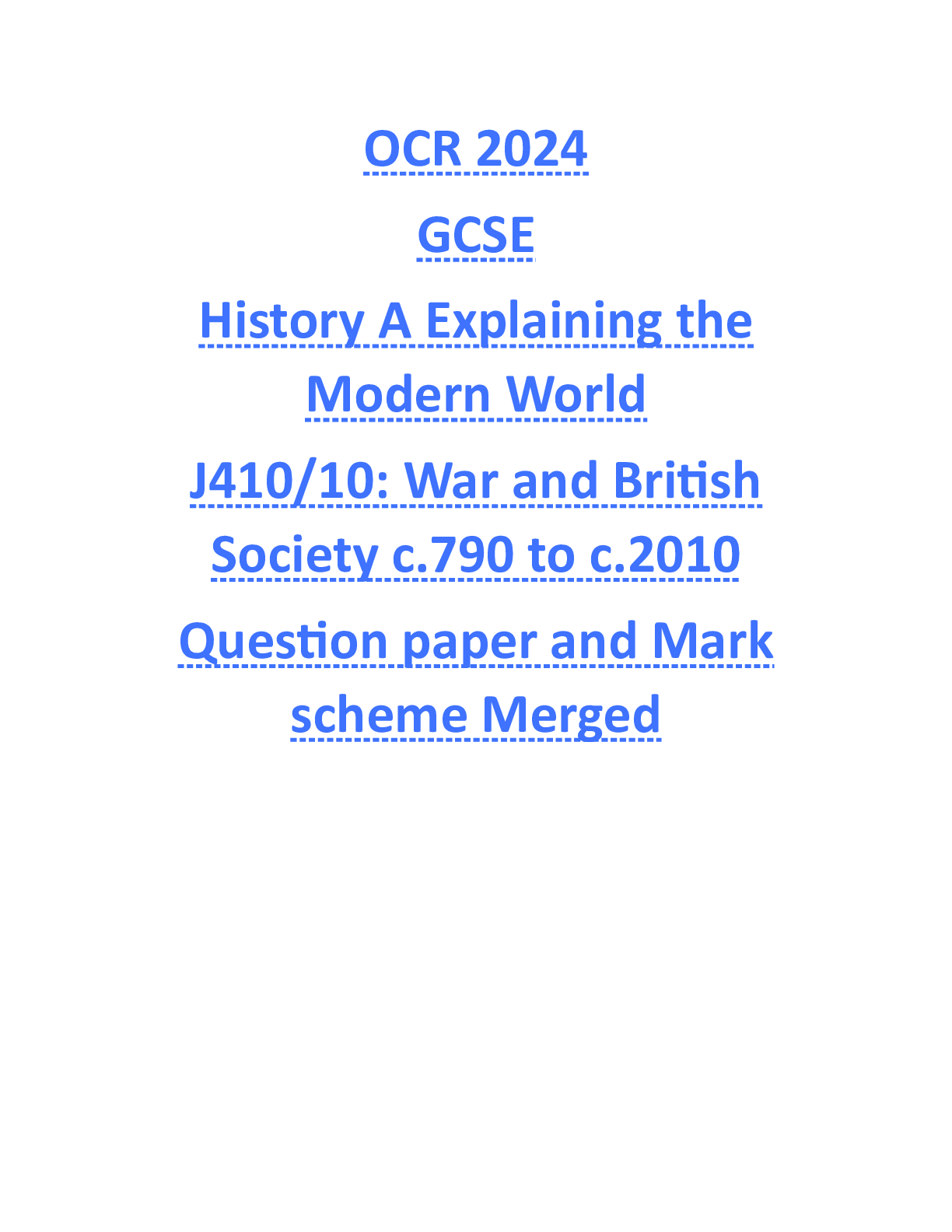 OCR > GCSE QUESTION PAPER > OCR 2024 GCSE History A Explaining the Modern World J410/10: War and British Society c.790 to c.2010 Question paper and Mark scheme Merged (All)