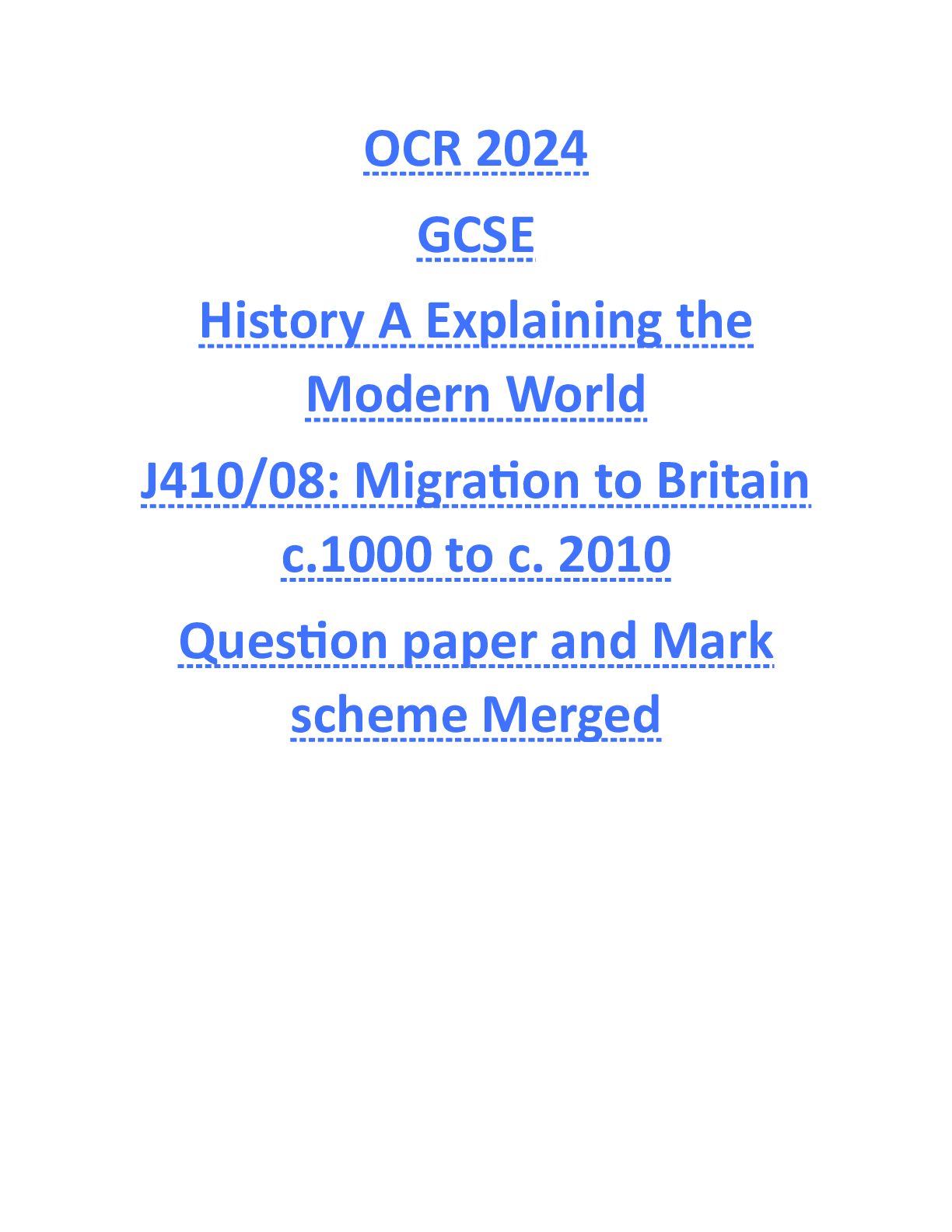 OCR > GCSE QUESTION PAPER > OCR 2024 GCSE History A Explaining the Modern World J410/08: Migration to Britain c.1000 to c. 2010 Question paper and Mark scheme Merged (All)