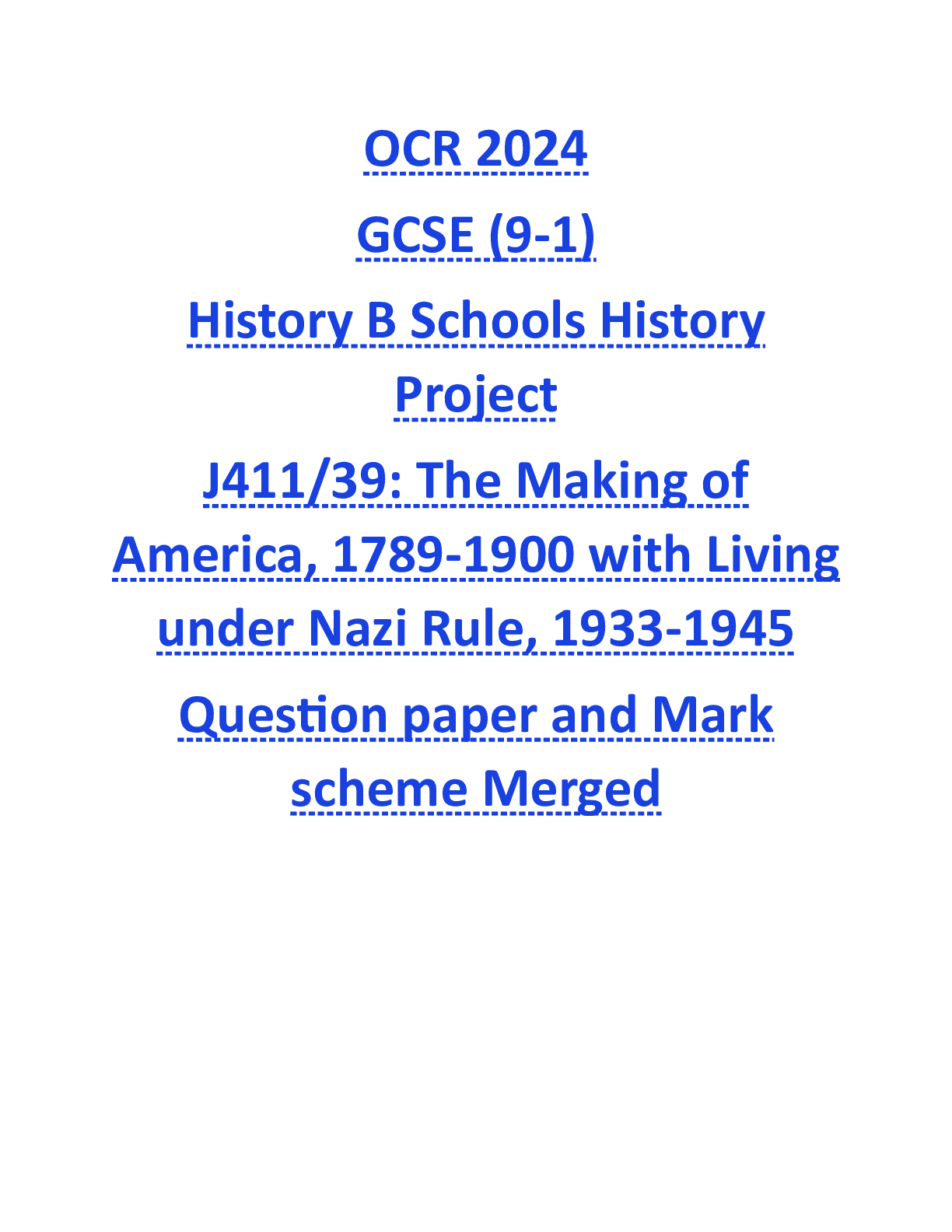 OCR > GCSE QUESTION PAPER > OCR 2024 GCSE (9-1) History B Schools History Project J411/39: The Making of America, 1789-1900 with Living under Nazi Rule, 1933-1945 Question paper and Mark scheme Merged (All)