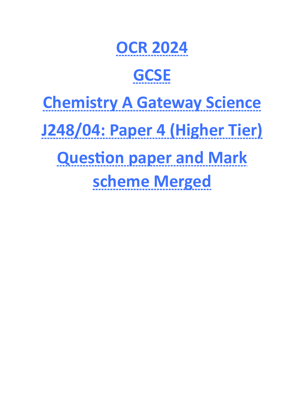 OCR > GCSE QUESTION PAPER > OCR 2024 GCSE Chemistry A Gateway Science J248/04: Paper 4 (Higher Tier) Question paper and Mark scheme Merged (All)