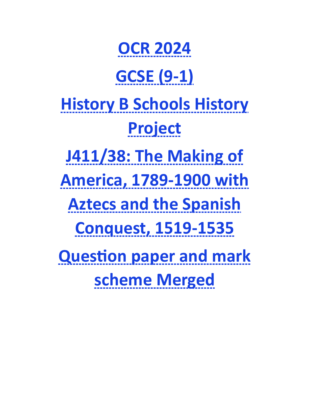 OCR > GCSE QUESTION PAPER > OCR 2024 GCSE (9-1) History B Schools History Project J411/38: The Making of America, 1789-1900 with Aztecs and the Spanish Conquest, 1519-1535 Question paper and mark scheme Merged (All)