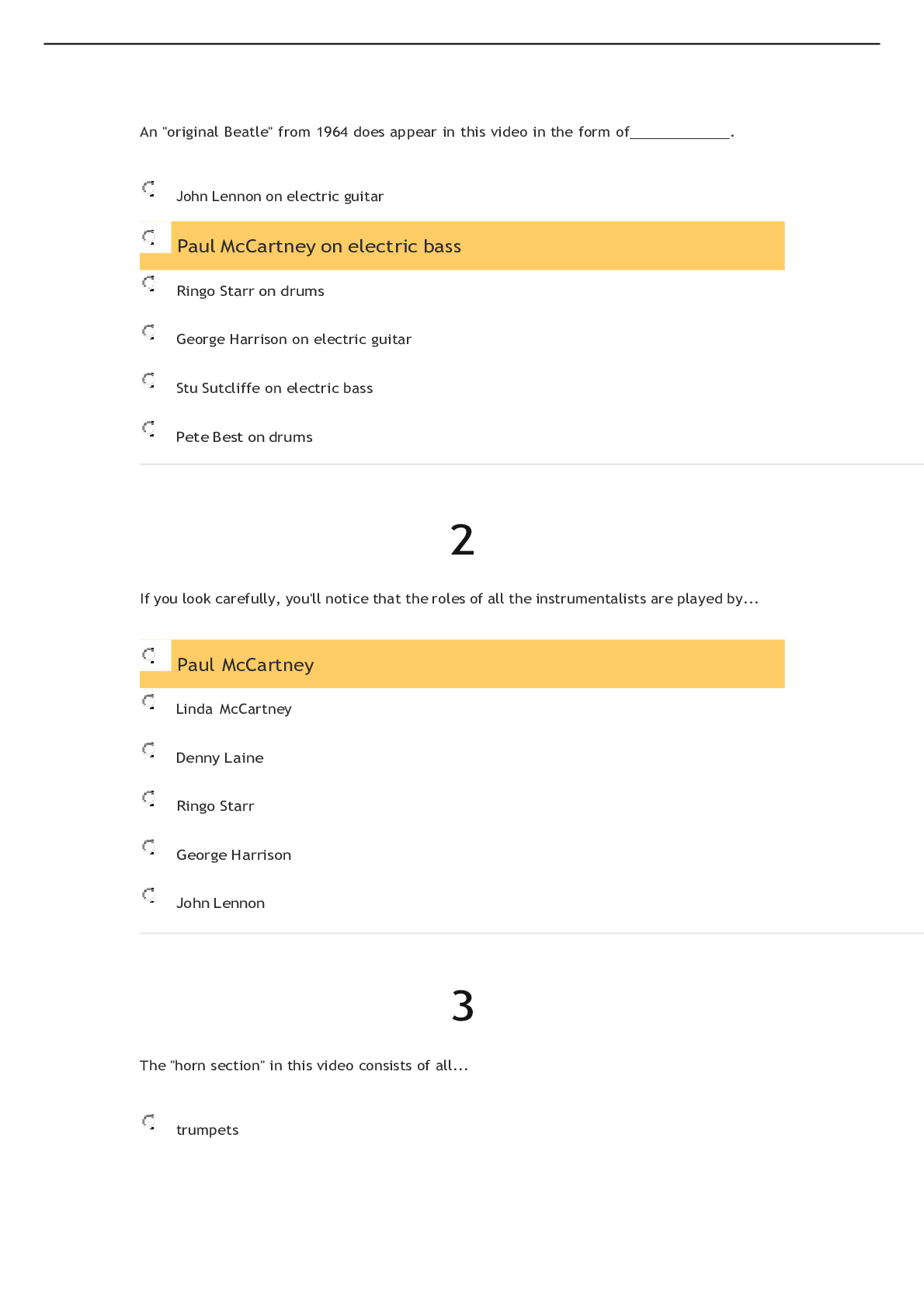 Music > QUESTIONS & ANSWERS > MUS 354 Beatles After Beatles (A Graded) Latest Questions and Complete Solutions (All)
