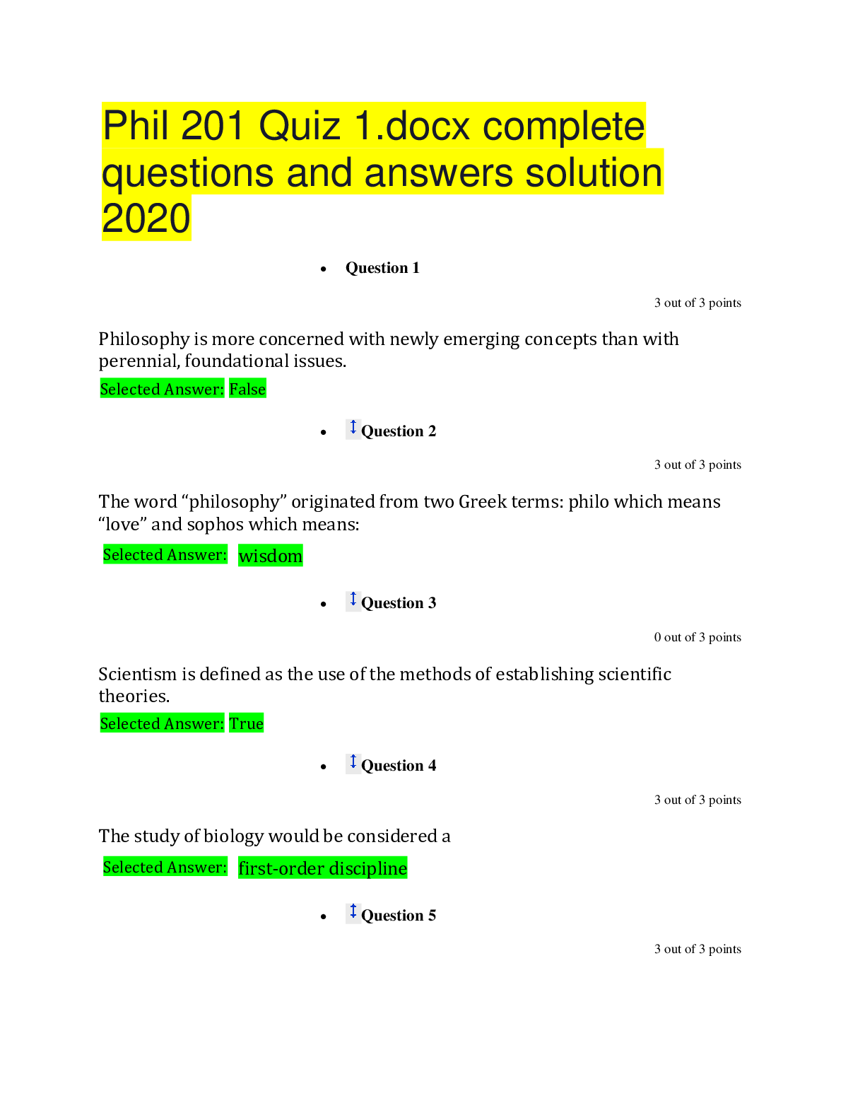 Philosophy > QUESTIONS & ANSWERS > PHIL 201 HONORS POSSIBLE QUESTIONS WITH ANSWERS SOLUTION DOCS 2020 (All)