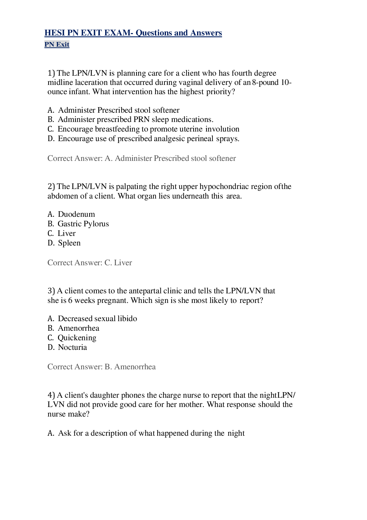 HESI RN EXIT > QUESTIONS & ANSWERS > HESI PN EXIT EXAM- Questions and Answers (All)