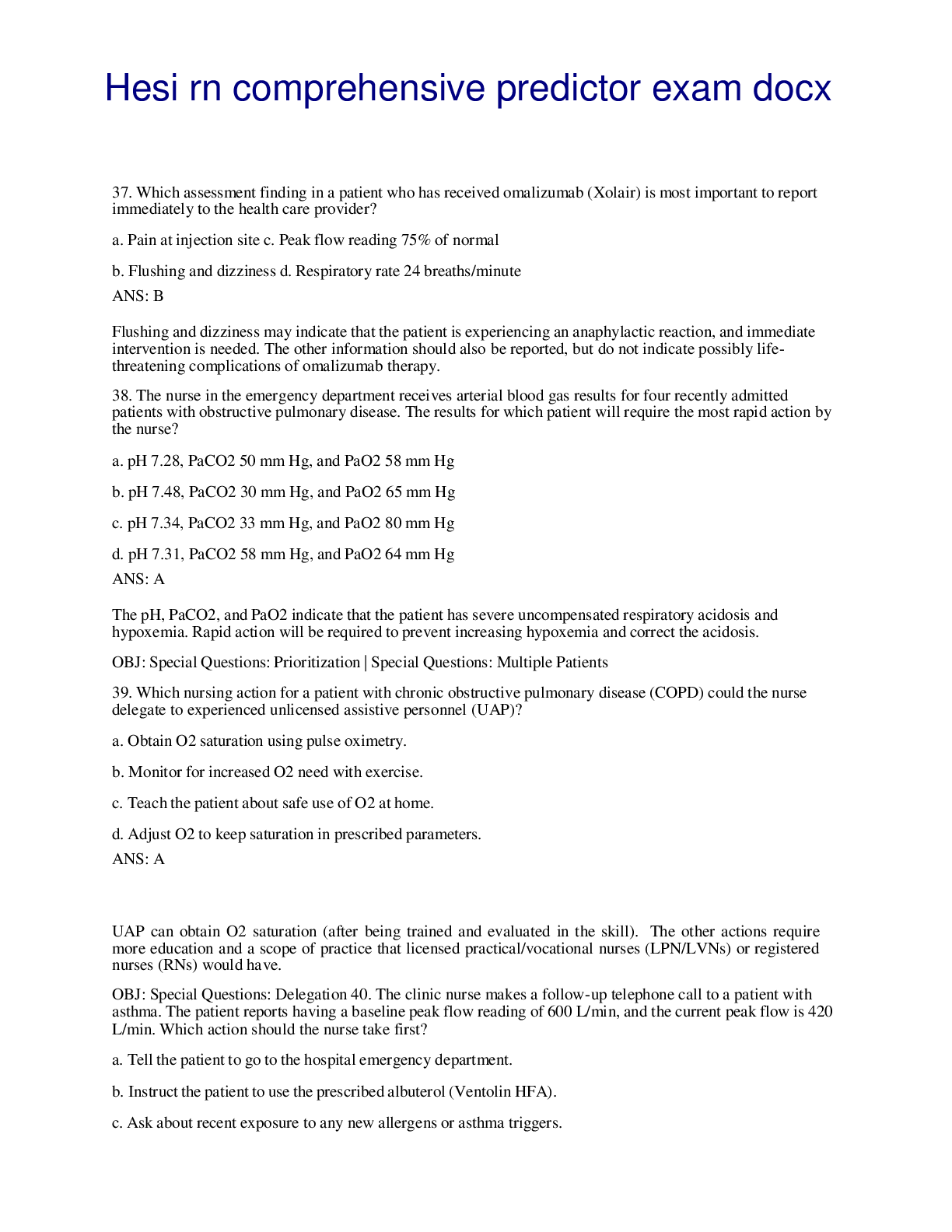 HESI RN EXIT > EXAM > Hesi rn comprehensive predictor (All)