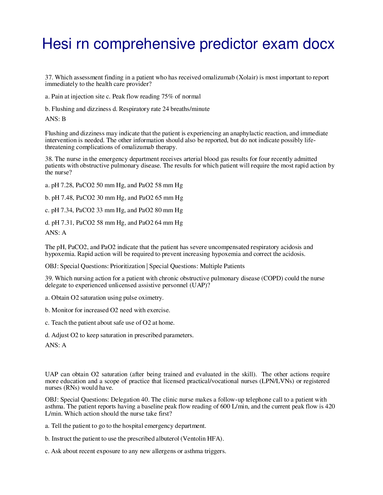 HESI RN EXIT > EXAM > Hesi rn comprehensive predictor exam docx (All)