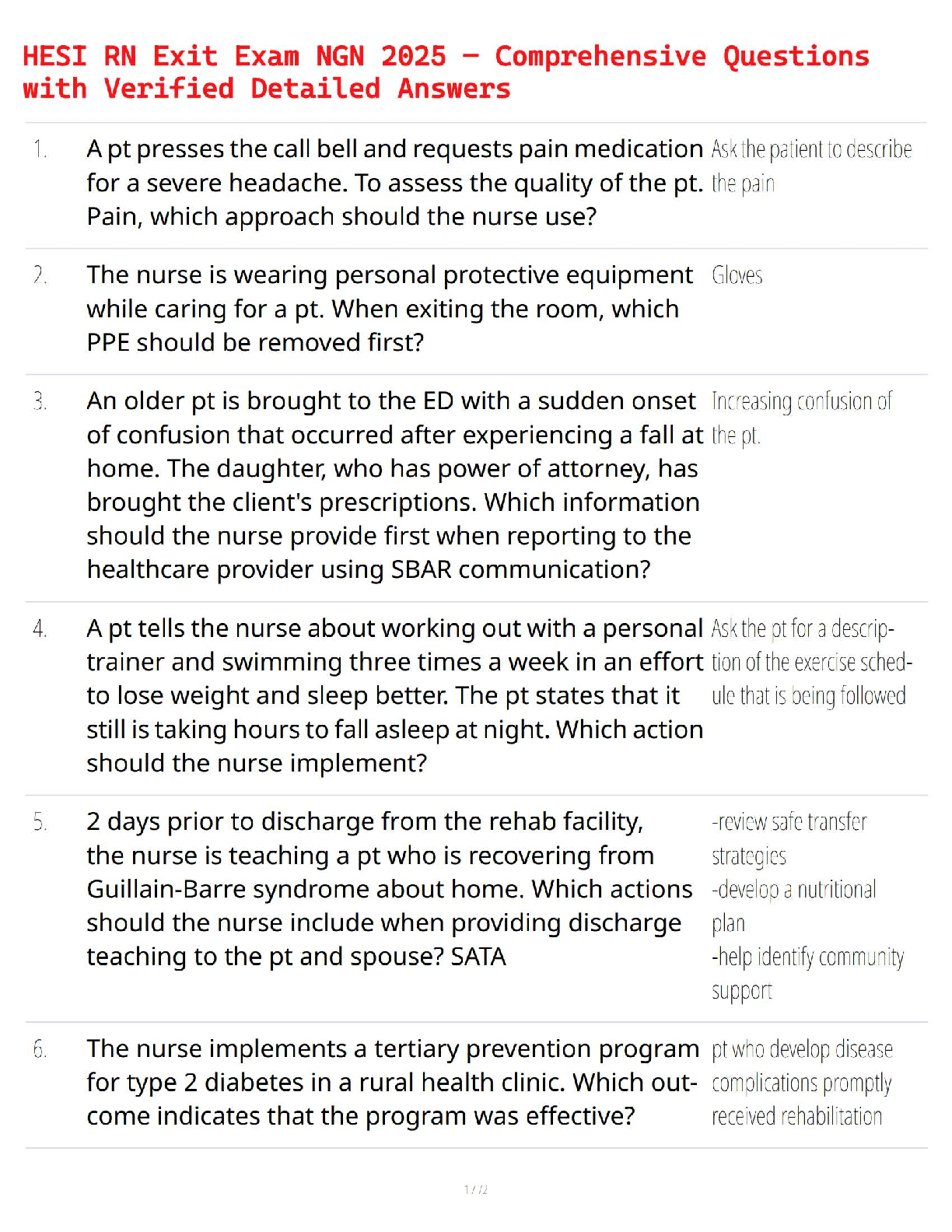 HESI RN EXIT > QUESTIONS and ANSWERS > HESI RN Exit Exam NGN 2025 – Comprehensive Questions with Verified Detailed Answers (All)