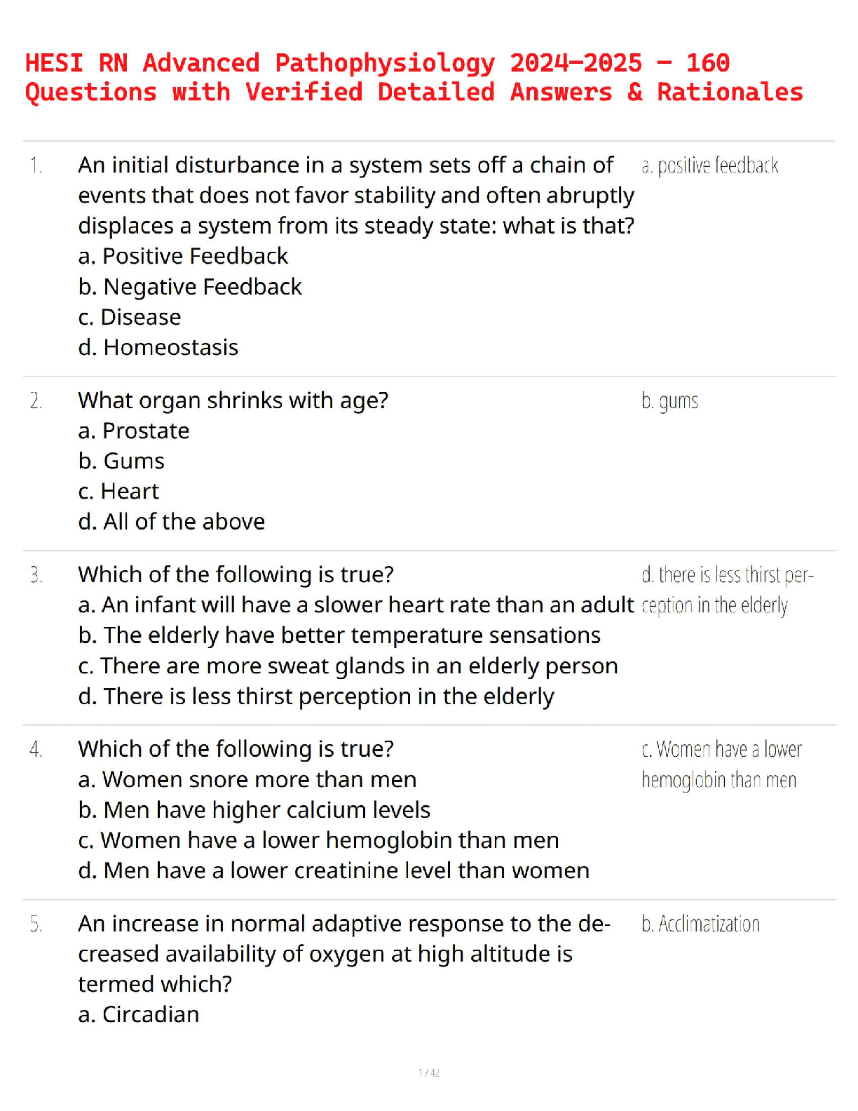 HESI RN EXIT > QUESTIONS and ANSWERS > HESI RN Advanced Pathophysiology 2024–2025 – 160 Questions with Verified Detailed Answers & Rationales (All)