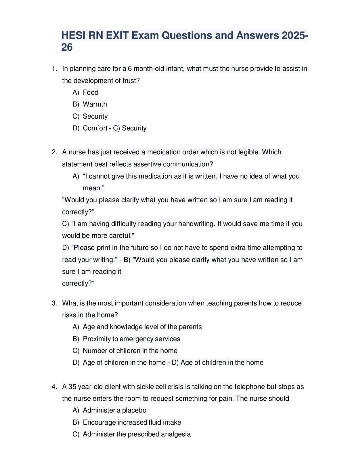 HESI RN EXIT > QUESTIONS & ANSWERS > HESI RN EXIT Exam Questions and Answers 2025 26 (All)