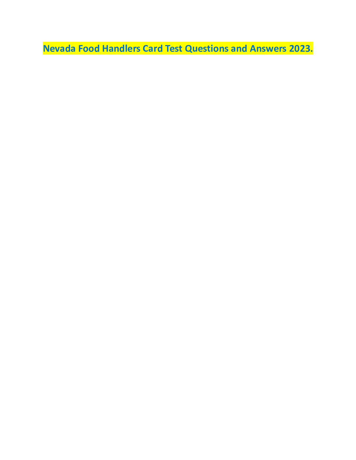 ServSafe > EXAMs > Nevada Food Handlers Card Test Questions and Answers 2023. (All)