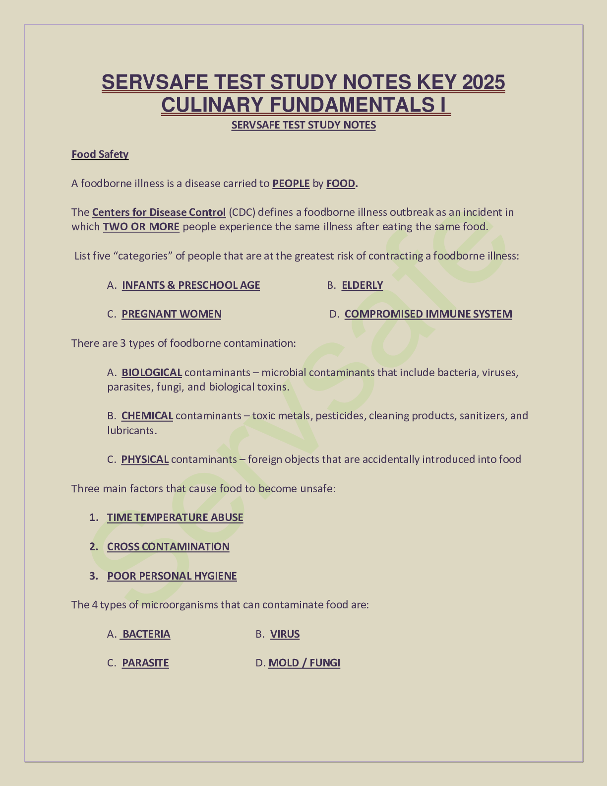 ServSafe > EXAMs > SERVSAFE TEST STUDY NOTES KEY 2025 CULINARY FUNDAMENTALS I (All)