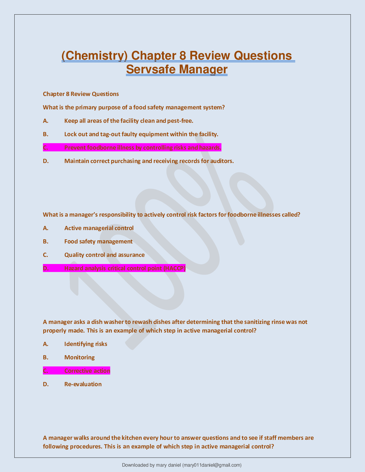 ServSafe > EXAMs > (Chemistry) Chapter 8 Review Questions Servsafe Manager (All)