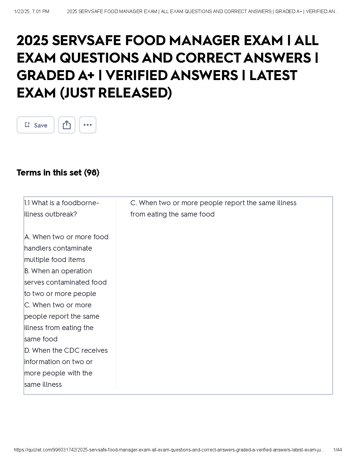 ServSafe > EXAMs > SERVSAFE FOOD MANAGER EXAM | ALL EXAM QUESTIONS AND CORRECT ANSWERS | GRADED A+ (All)