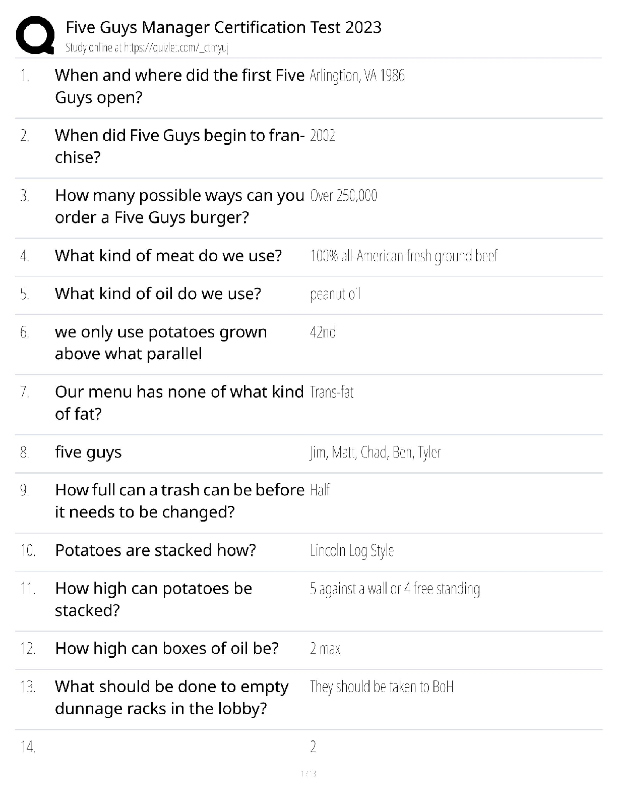 ServSafe Food Safety Training Program (SERVSAFE) > QUESTIONS & ANSWERS > Five Guys Manager Certification Test / Restaurant Management Exam / 2026 Update / Practice Questions & Answers (All)