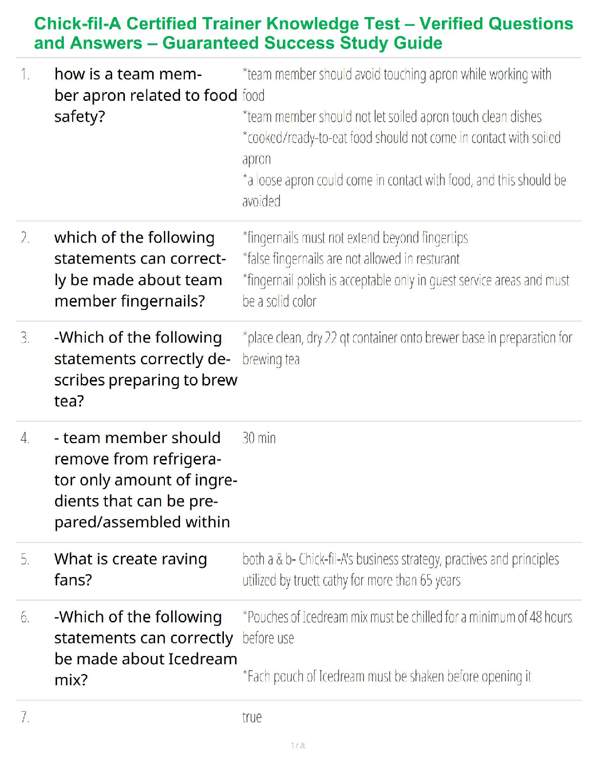 ServSafe Food Safety Training Program (SERVSAFE) > QUESTIONS & ANSWERS > Chick-fil-A Certified Trainer Knowledge Test – Verified Questions and Answers – Guaranteed Success Study Guide (All)