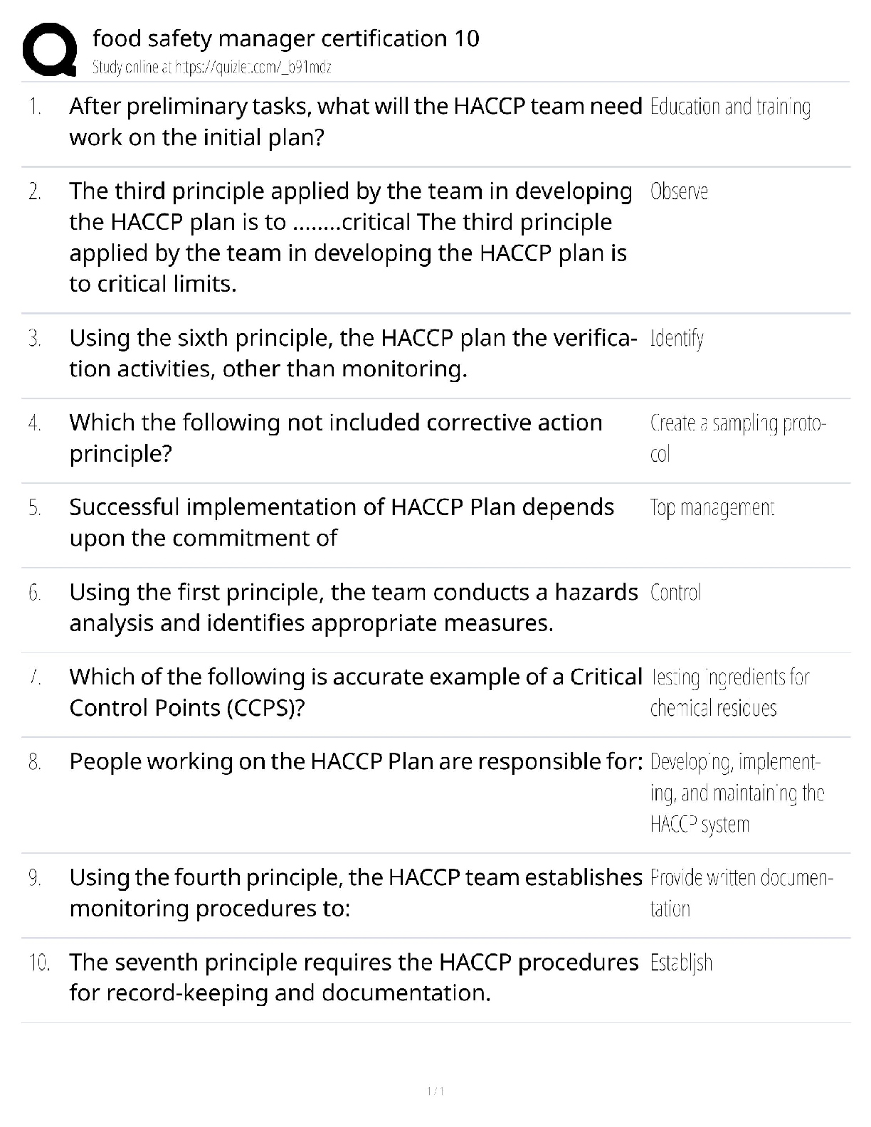 ServSafe Food Safety Training Program (SERVSAFE) > QUESTIONS & ANSWERS > HACCP Manager's Certificate Course / Practice Exam & Study Guide / 2025 Update / Score 100% (All)