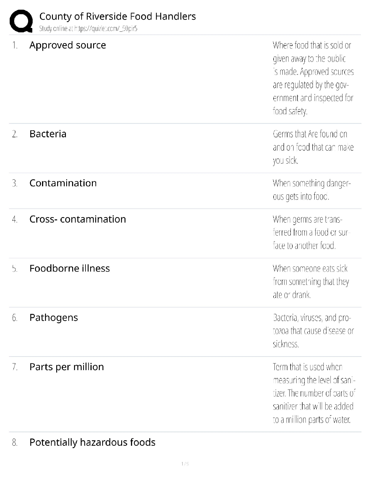 ServSafe Food Safety Training Program (SERVSAFE) > QUESTIONS & ANSWERS > Riverside County Food Handlers Card / California Food Safety Exam / 2026 Update / Practice Test & Answers (All)