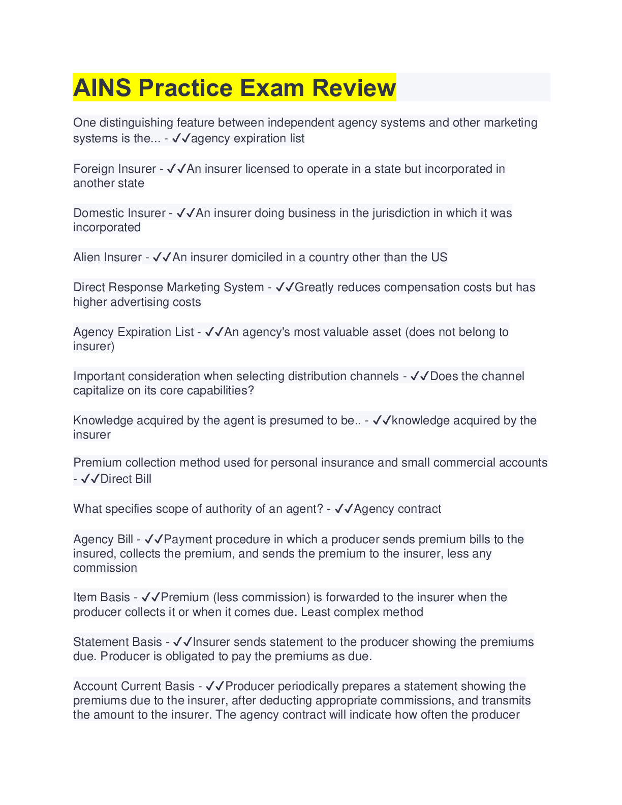 Management > EXAM > AINS Practice Exam Review 2022/2023(QUESTIONS & ANSWERS 100% ANSWERS) (All)