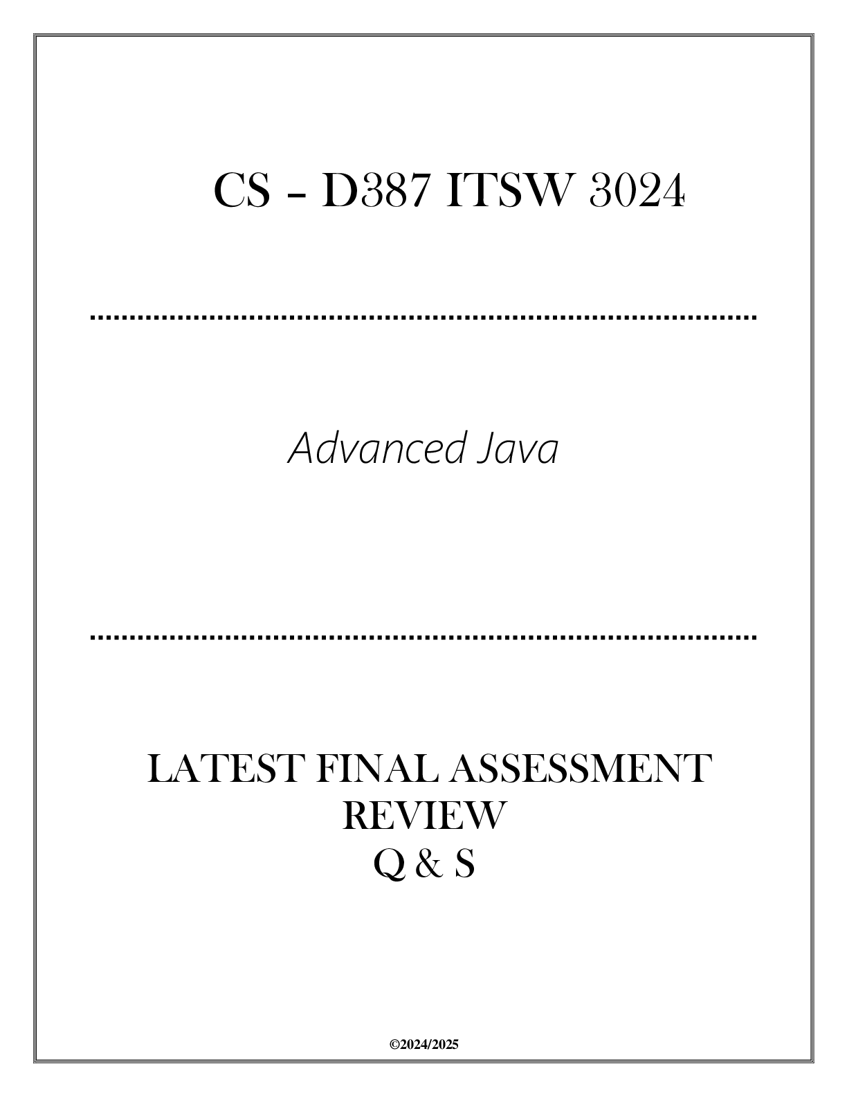 Computers and other technology > EXAM > (CS-D387) ITSW 3024 Advanced Java - Latest FA Review Q & S 2024 (All)