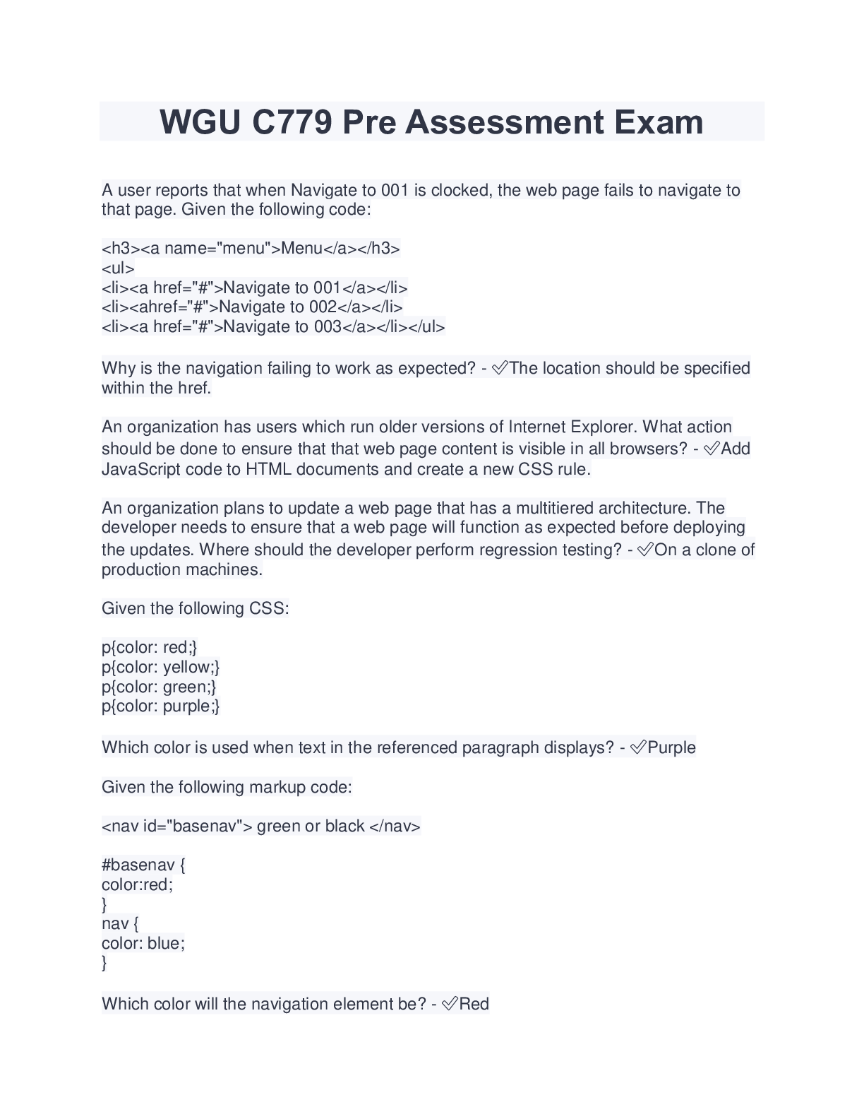 Computer Networking > EXAM > WGU C779 Pre Assessment Exam C 779 (Latest 2022/2023) Complete Solutions (All)
