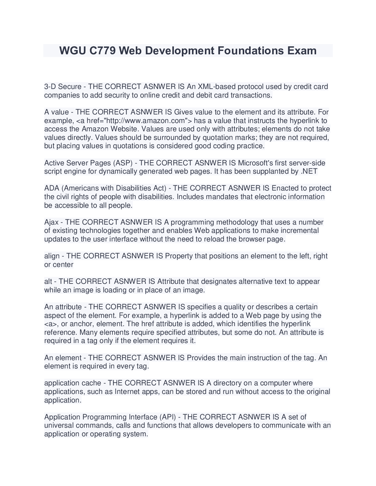 Computer Networking > EXAM > WGU C779 Web Development Foundations Master Test Exam, (Latest 2022/2023) (All)