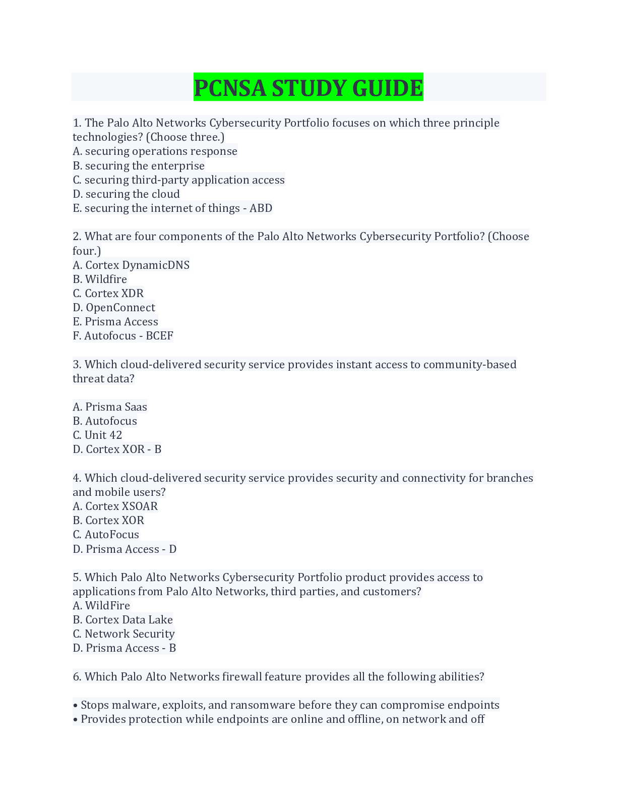 Computer Networking > EXAM > PCNSA STUDY GUIDE QUESTIONS AND ANSWERS/ DOWNLOAD (All)