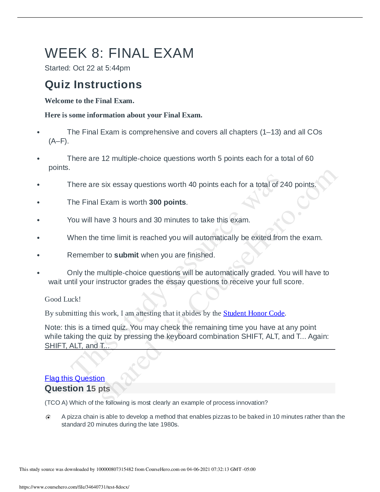 Computer Networking > EXAM > NETW 583 Week 8 Final Exam 2020 (All)