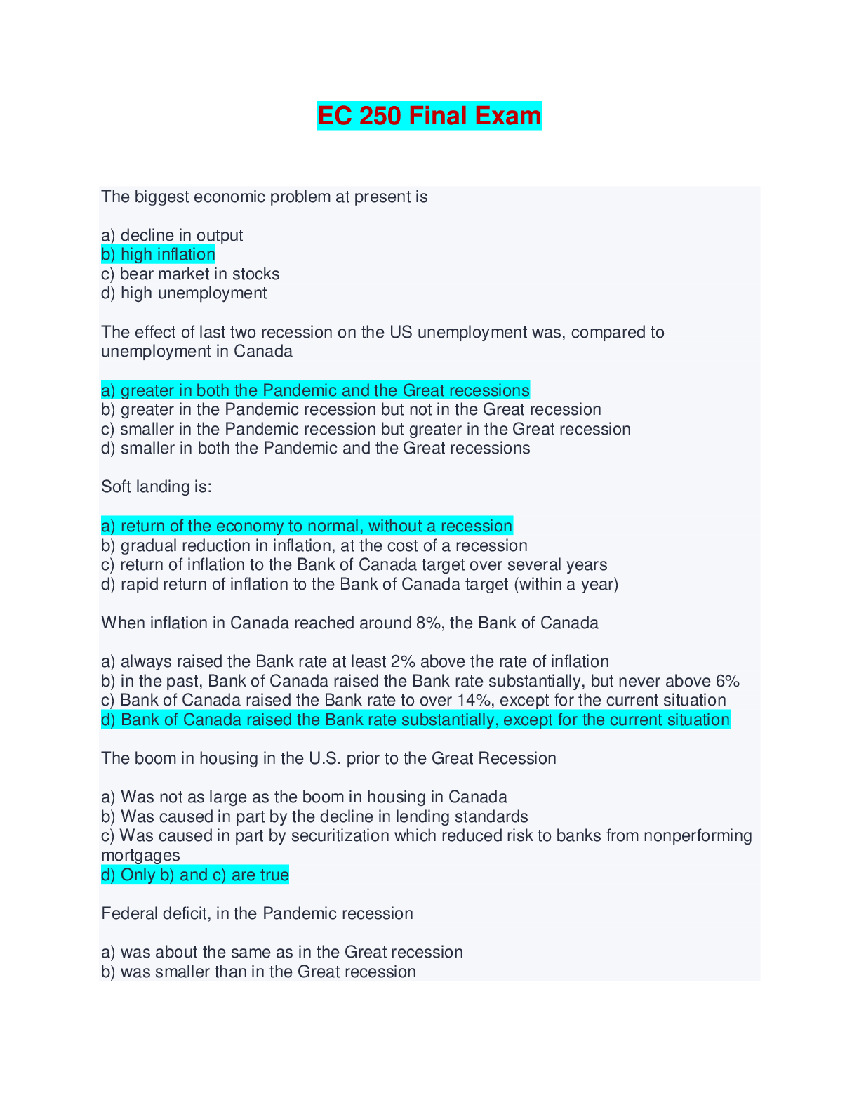 Macroeconomics > EXAM > EC 250 Final Exam - Questions and Answers (Complete Solutions) (All)