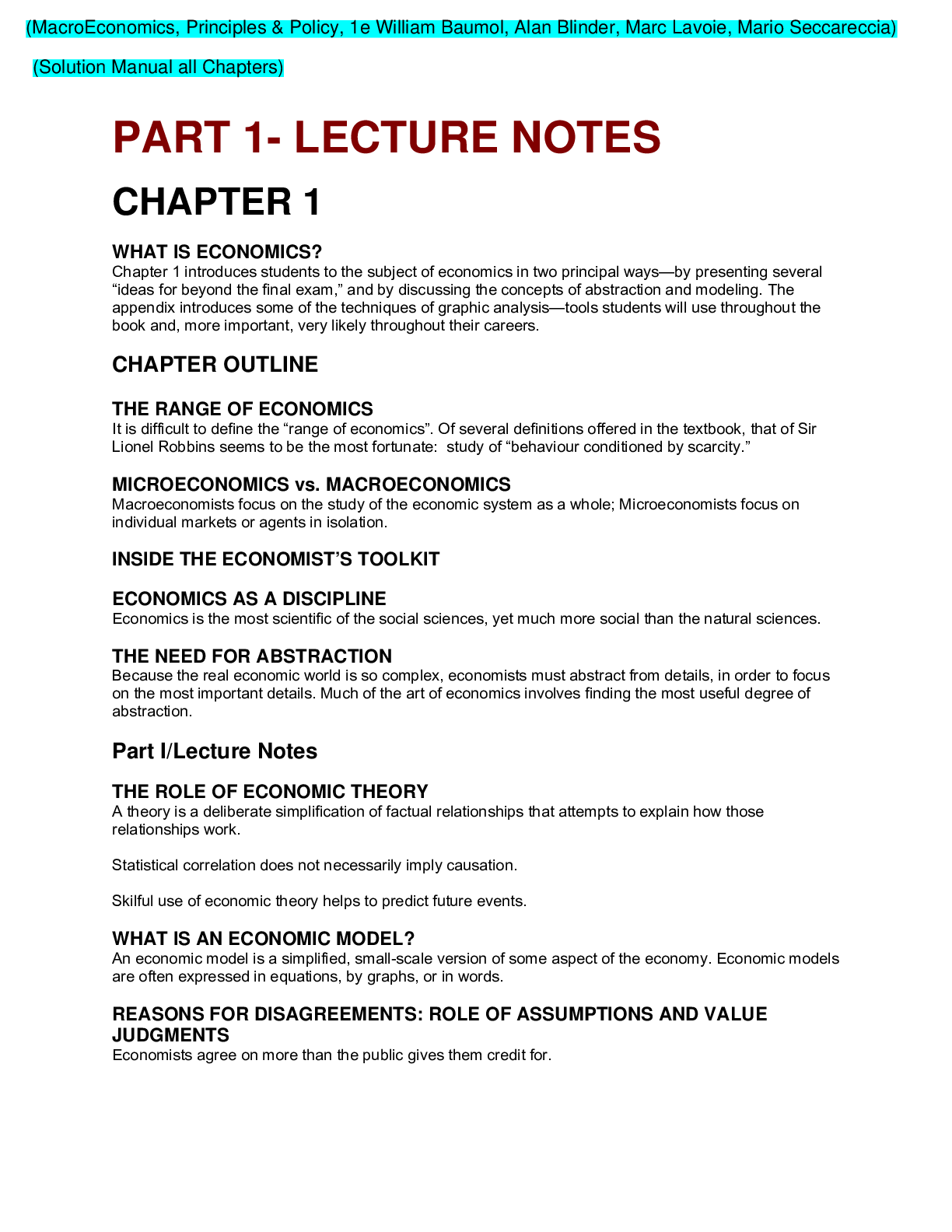 Macroeconomics > SOLUTIONS MANUAL > MacroEconomics, Principles & Policy, 1e William Baumol, Alan Blinder, Marc Lavoie, Mario Seccareccia (Solution Manaul) (All)