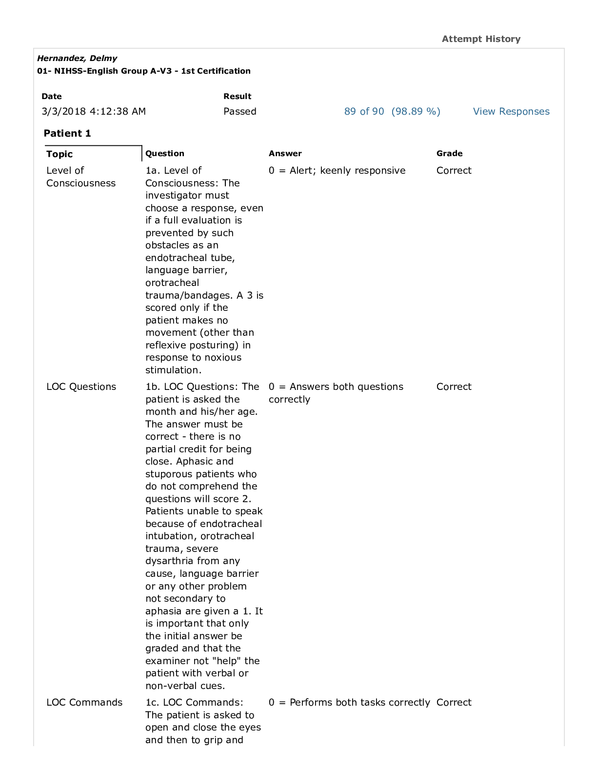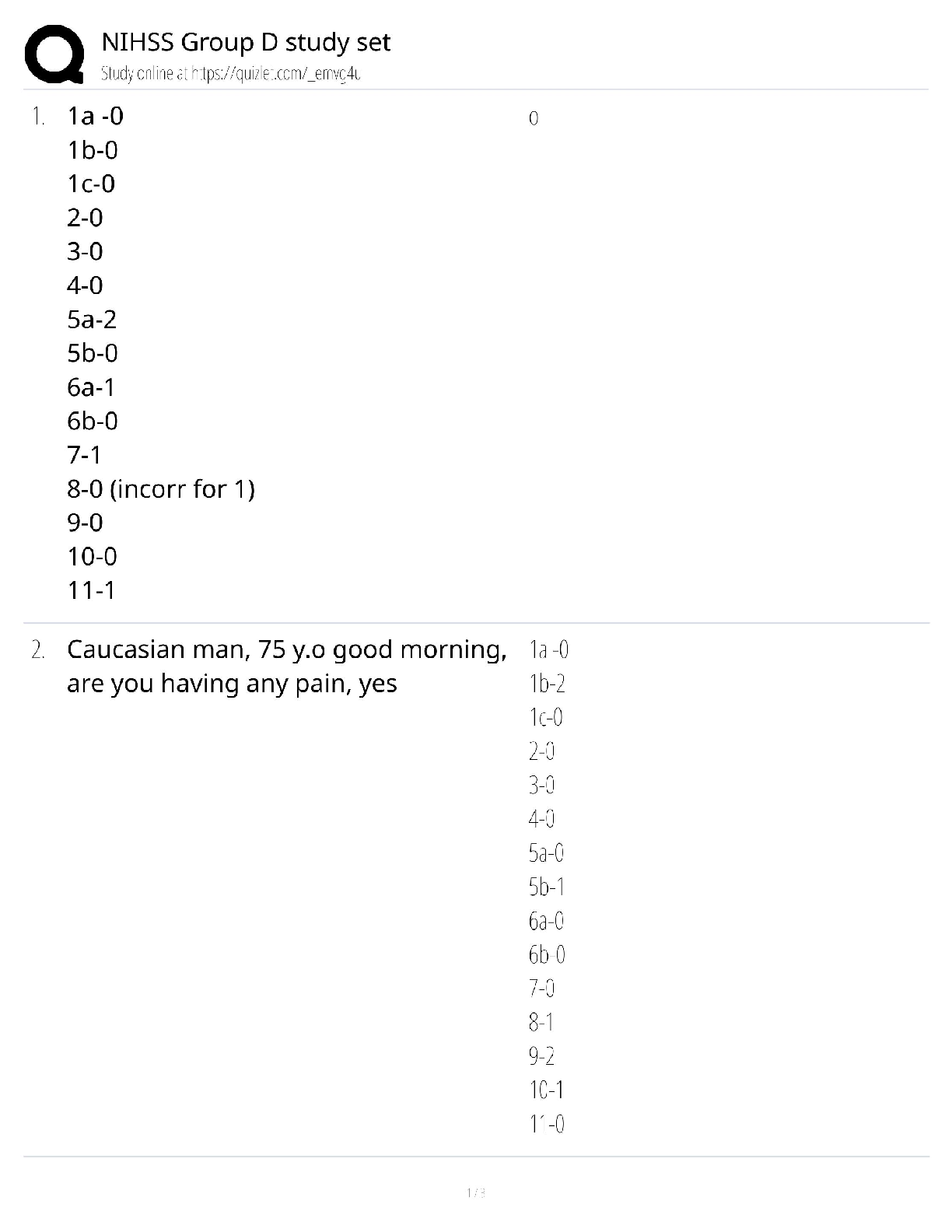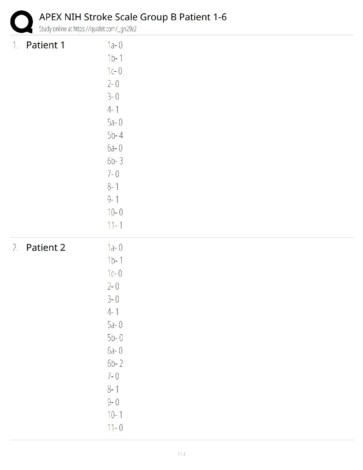 NIH Stroke Scale > CASE STUDY > NIH Stroke Scale – All Test Groups A-F (patients 1-6) Answer key Updated Spring 2023. (All)