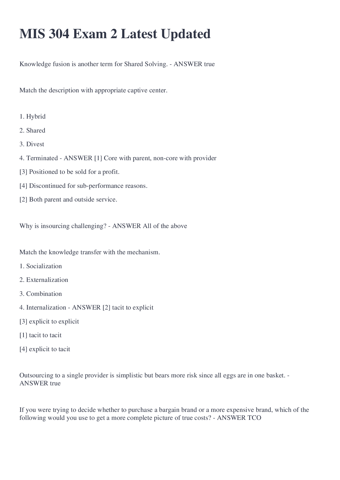 Managerial Economics > EXAM > MIS 304 Exam 2 Latest Updated (All)