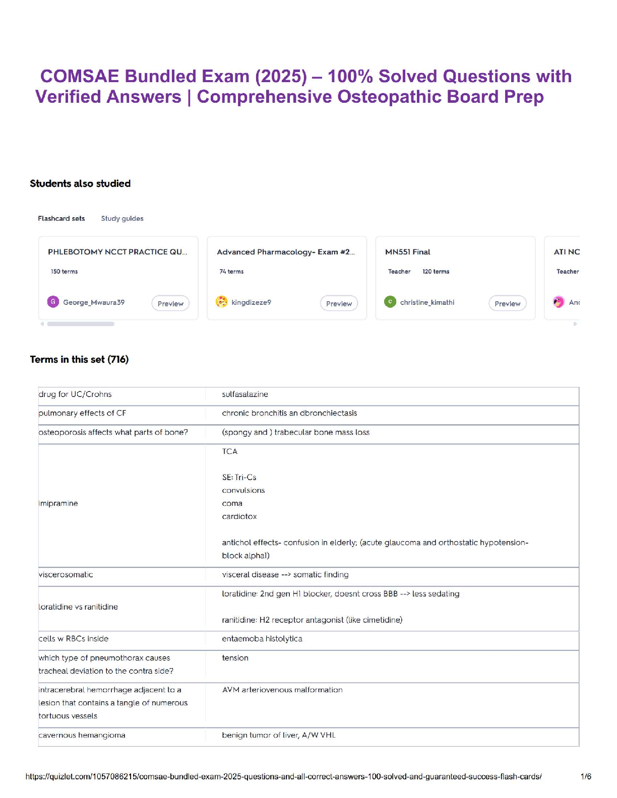 Medication Aide Certification Examination > EXAM > COMSAE Bundled Exam (2025) – 100% Solved Questions with Verified Answers | Comprehensive Osteopathic Board Prep (All)