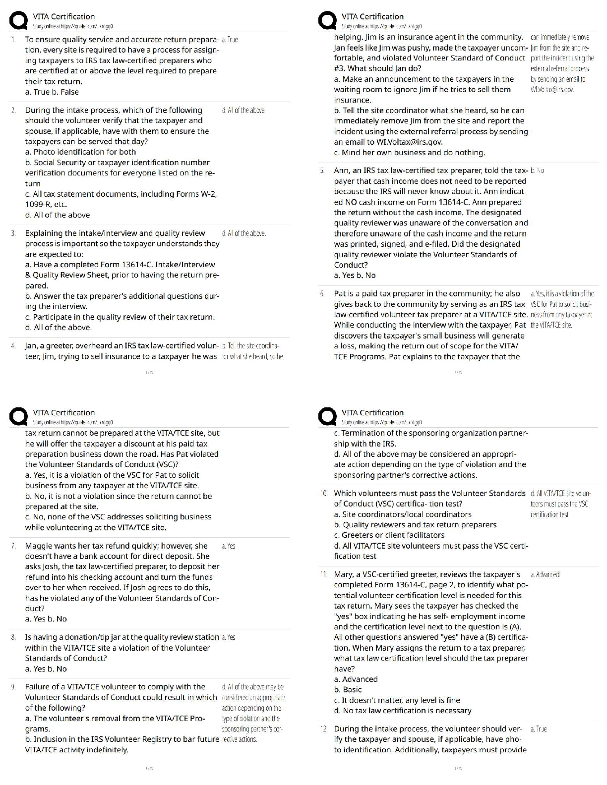 Medication Aide Certification Examination > QUESTIONS & ANSWERS > VITA Certification / 2025 Update / Score 100% / IRS Volunteer Tax Preparer Study Guide & Practice Test Bank (All)