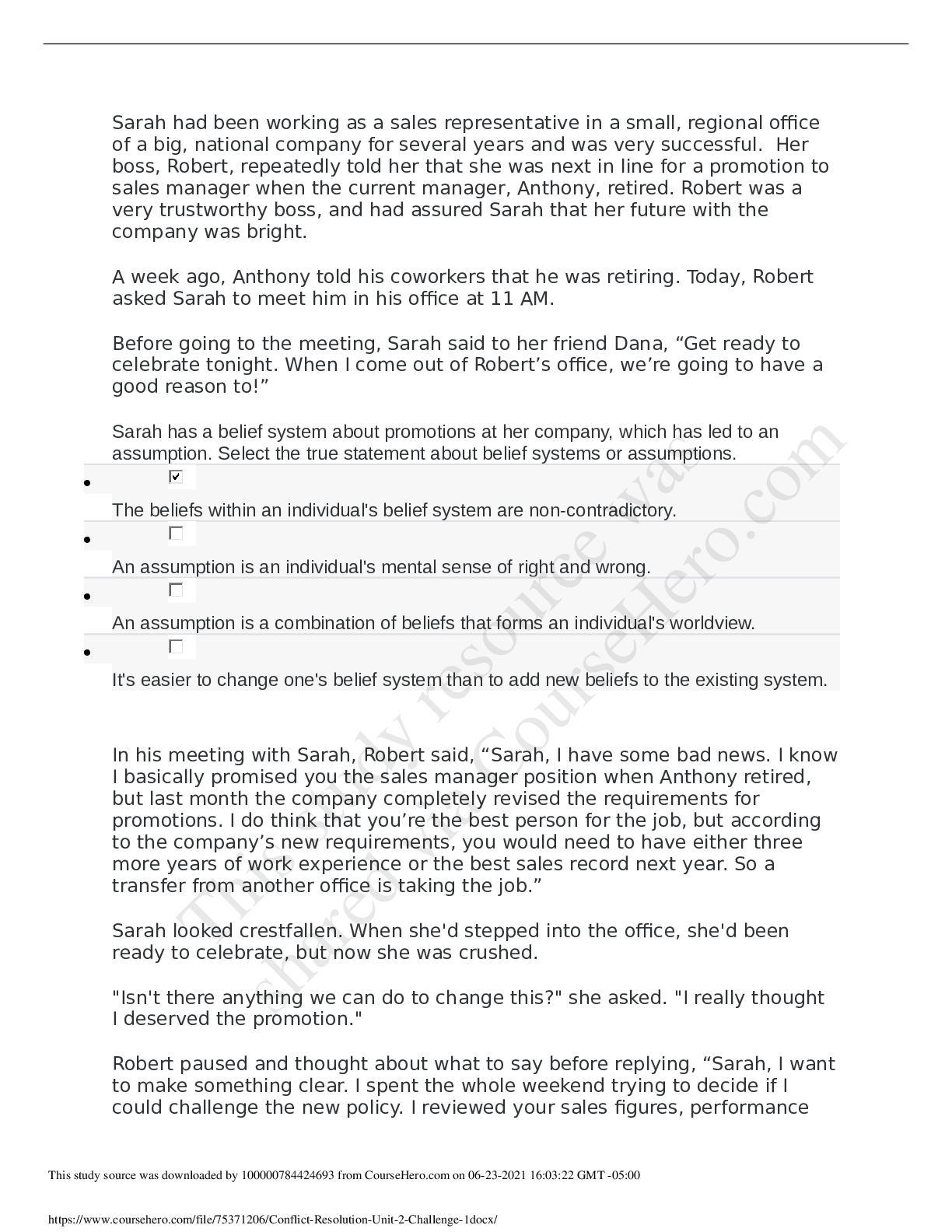 Social Sciences > STUDY GUIDE > Ashford UniversitySOCIAL SCI SSC 330Conflict Resolution Unit 2 Challenge (All)