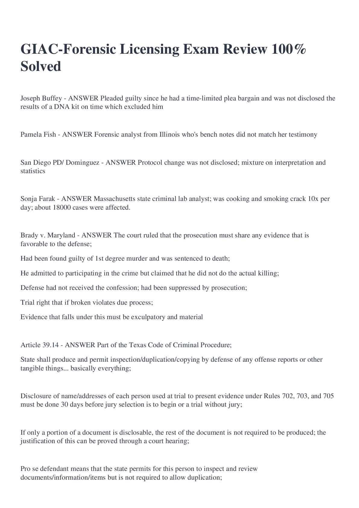 Social Sciences > EXAM REVIEW > GIAC-Forensic Licensing Exam Review 100% Solved (All)