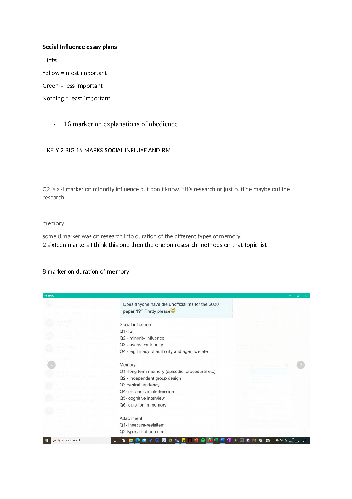 Social Sciences > ESSAY > Social Influence essay plans.docx (All)