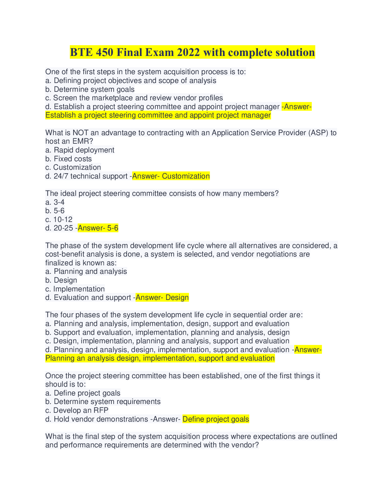 Social Sciences > QUESTIONS & ANSWERS > BTE 450 Final Exam 2022 with complete solution (All)