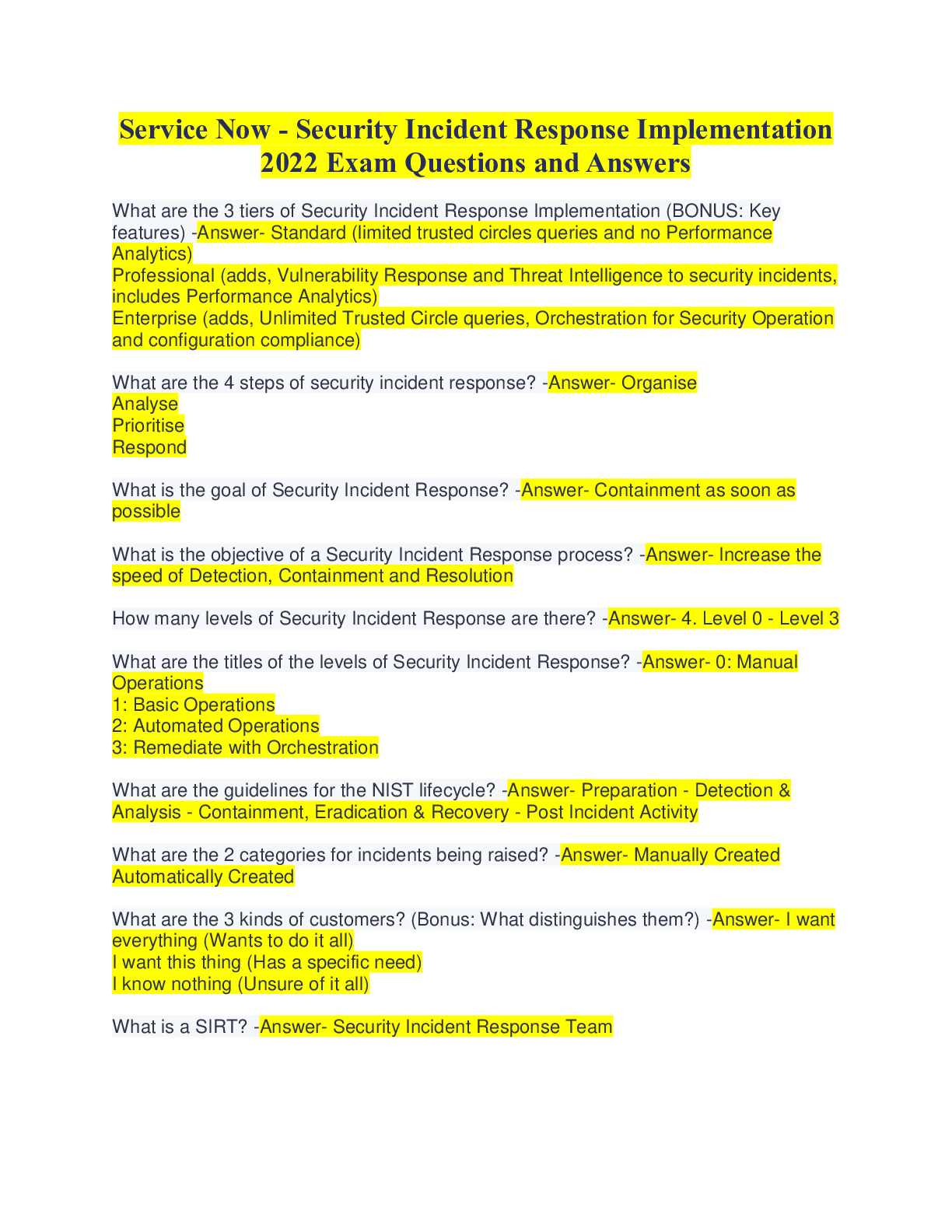 Social Sciences > QUESTIONS & ANSWERS > ServiceNow - Security Incident Response Implementation 2022 Exam Questions and Answers (All)
