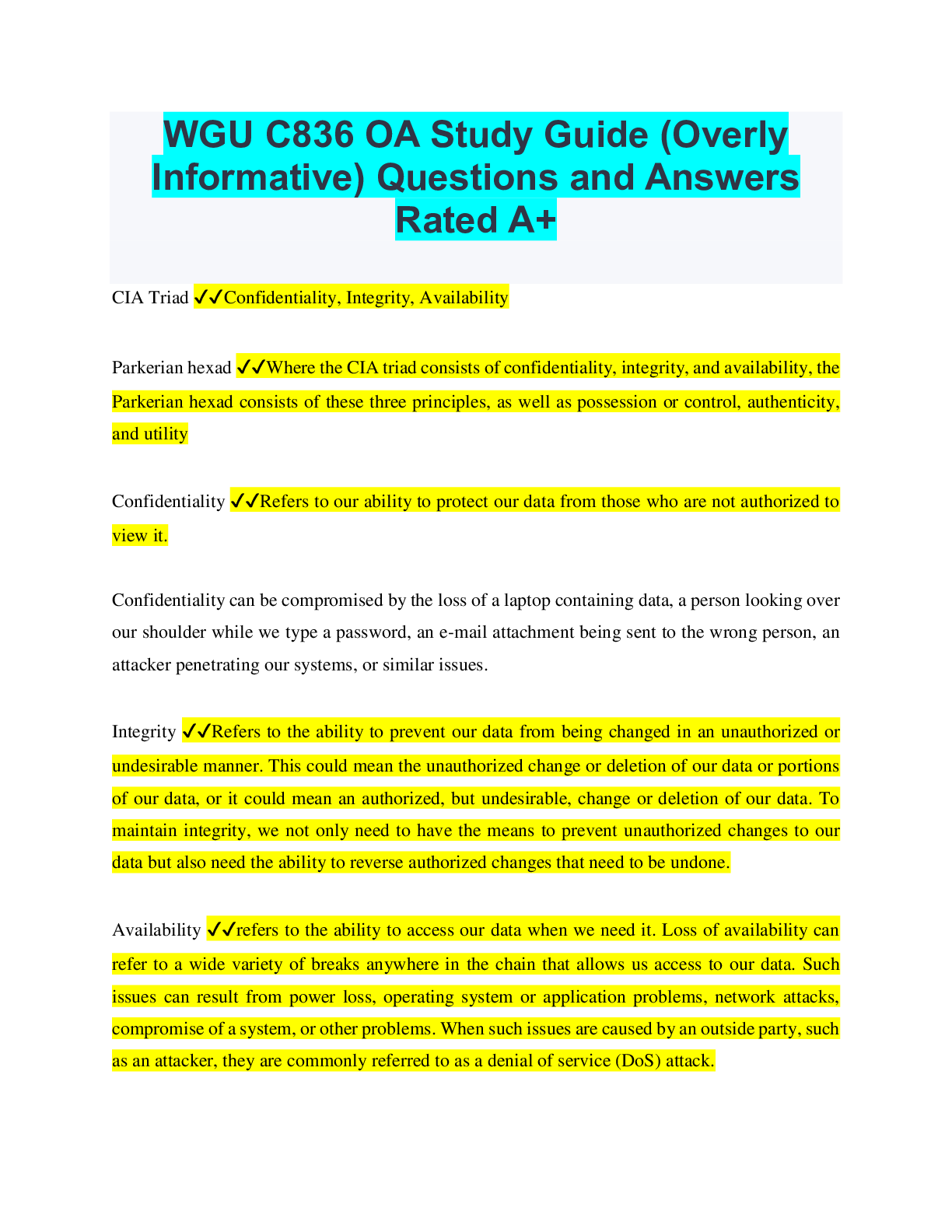 Social Sciences > EXAM > WGU C836 OA Study Guide (Overly Informative) Questions and Answers Rated A+ (All)