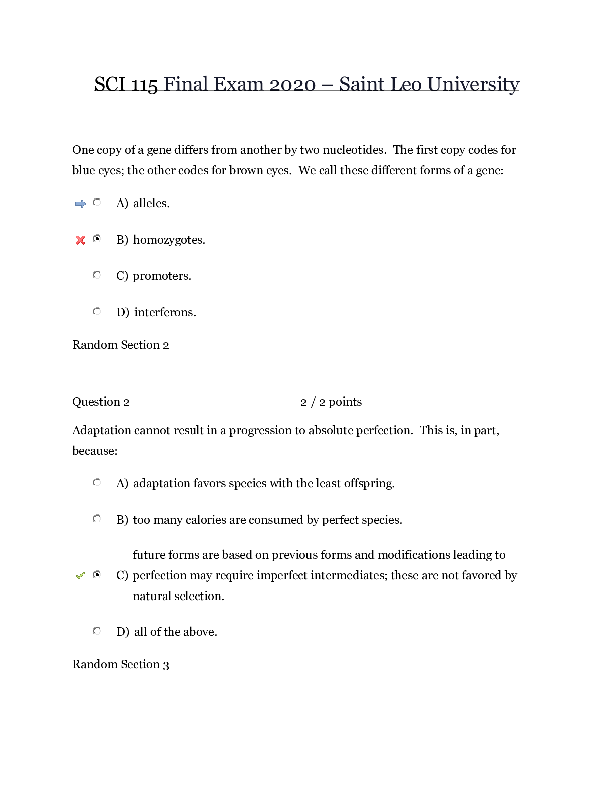 Social Sciences > EXAM > SCI 115 Evolution Final Exam (updated 2020) – Saint Leo University | SCI 115 Evolution Final Exam (updated 2020) (All)