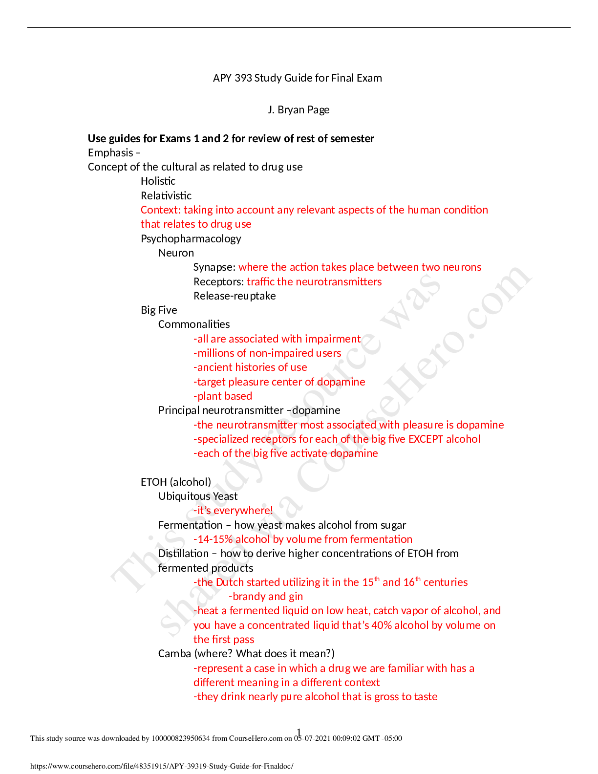 Social Sciences > STUDY GUIDE > University of Miami<APY 393<APY 39319 Study Guide for Final-REVIEWED AND EDITED BY EXPERTS 2021 (All)