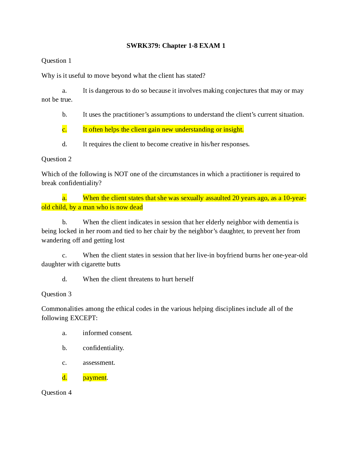 Social Sciences > EXAM > Western Kentucky University SWRK379 exam 1-REVIEWED BY EXPERTS-GRADED A+ (All)