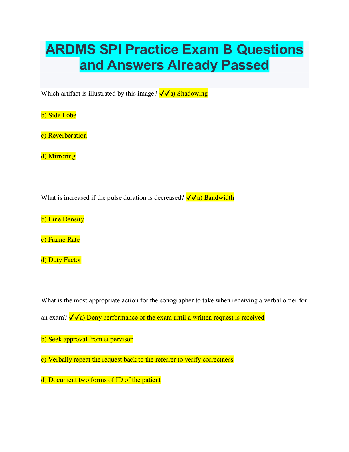 Social Sciences > QUESTIONS & ANSWERS > ARDMS SPI Practice Exam B Questions and Answers Already Passed (All)